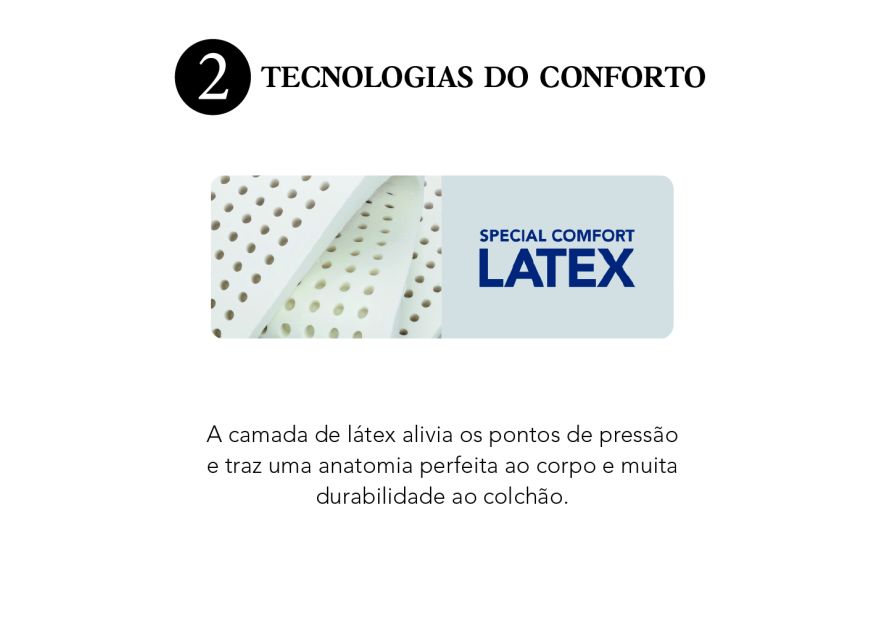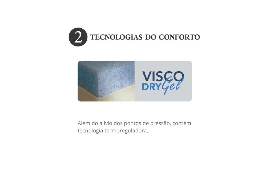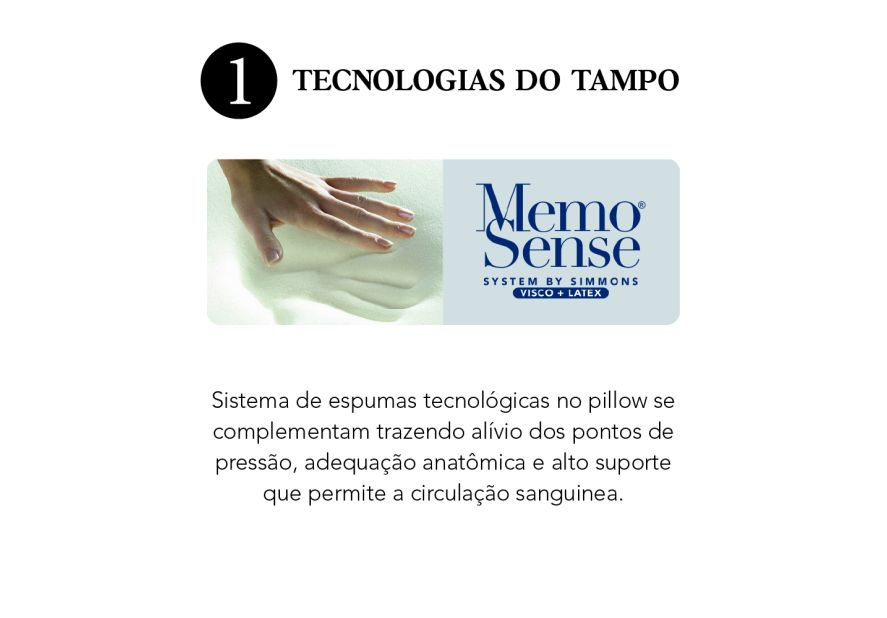 O sistema MemoSense® auxilia no alívio dos pontos de pressão corporal, enquanto a combinação de látex, Visco Dry Gel e espumas de alta performance proporciona adaptação ao corpo e conforto contínuo ao longo da noite. Além disso, o colchão conta com ZeeFlex, tecnologia que reduz o impacto ambiental, reforçando o compromisso da Simmons com a sustentabilidade.